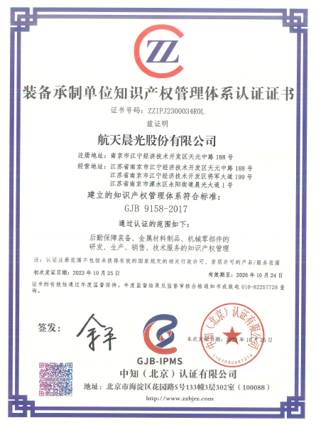 航天晨光股份有限公司  >  關于我們  >  榮譽資質 > 正文